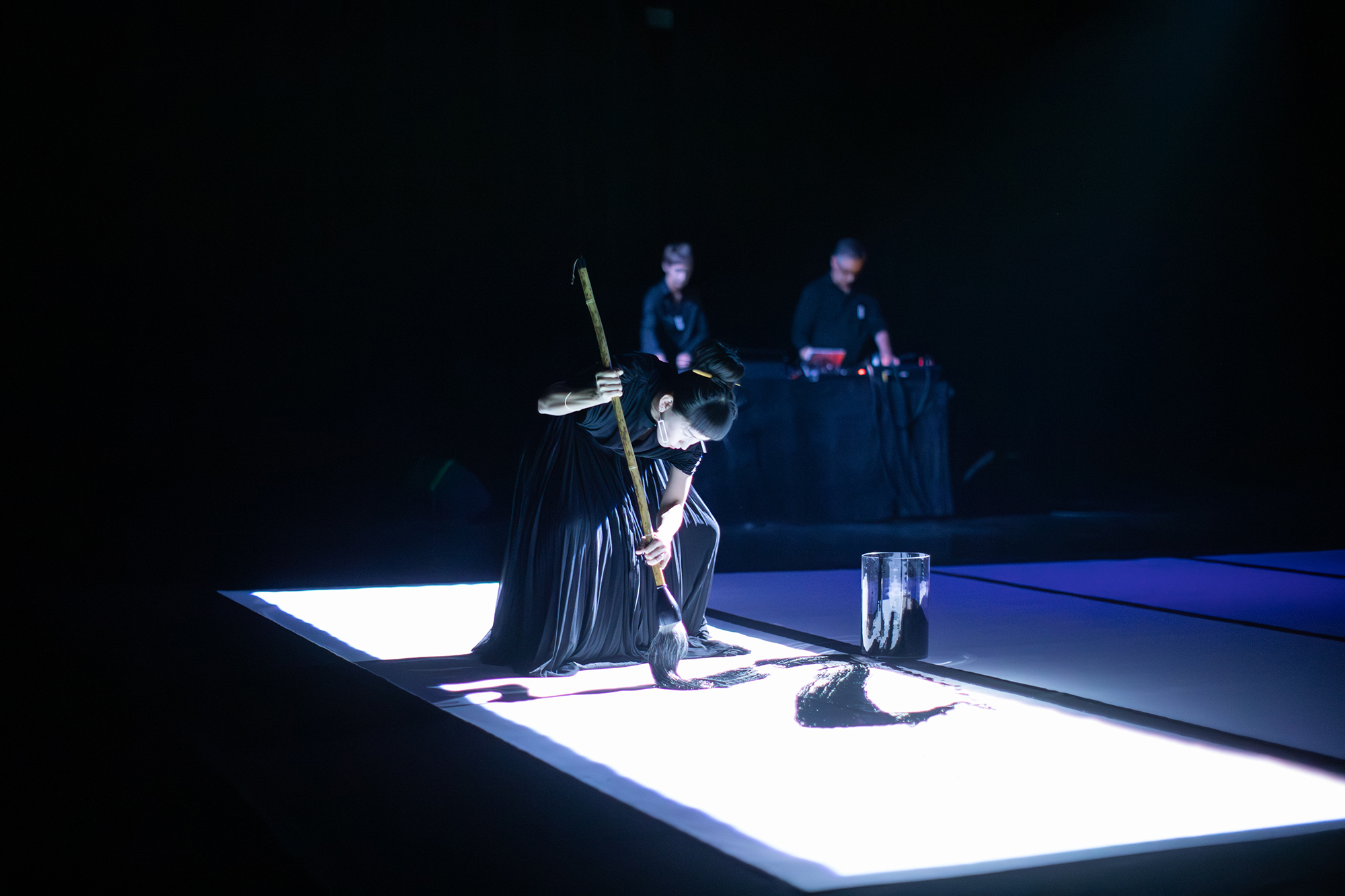 Across five acts, calligraphy and audiovisual choreography intertwine, transforming the space into an immersive dialogue of light, sound, and gesture.