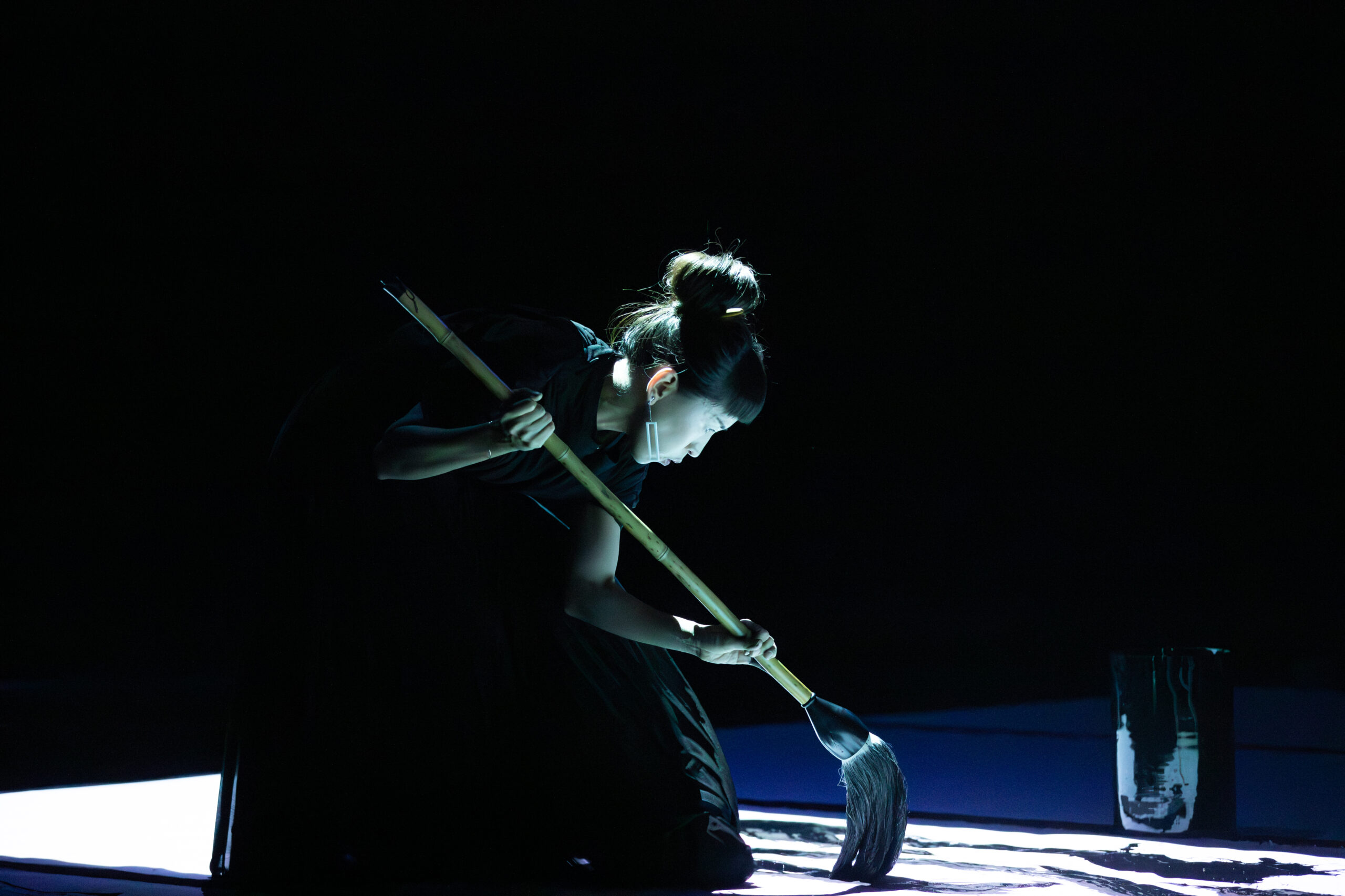 Schnitt and Aoi Yamaguchi explore in Calligraton the relationship between sound and writing, rhythms, balances, full and empty spaces, sounds and silences confront each other on stage, discovering a profound affinity between sound and sign. The electronic/digital compositional gesture relates to the calligraphic gesture in an intimate conversation that explores the interconnection between the human gesture and the technological element.